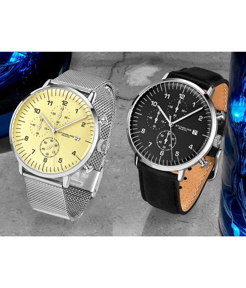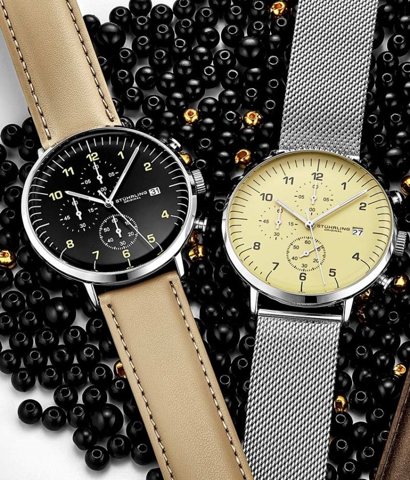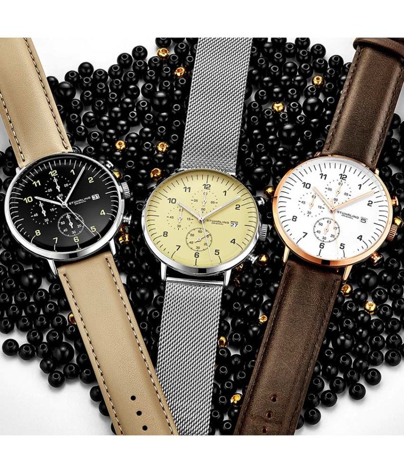 The Essex combines 60-second, 60-minute, and half-second subdials with luminous index hands to create an easy-to-read dial.