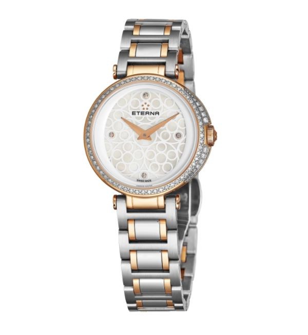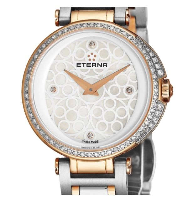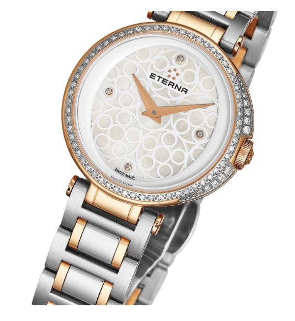 You're reviewing: Eterna Women's 2561.59.61.1724 'Grace' Mother of Pearl Dial Two Tone Stainless Steel Diamond Quartz Watch